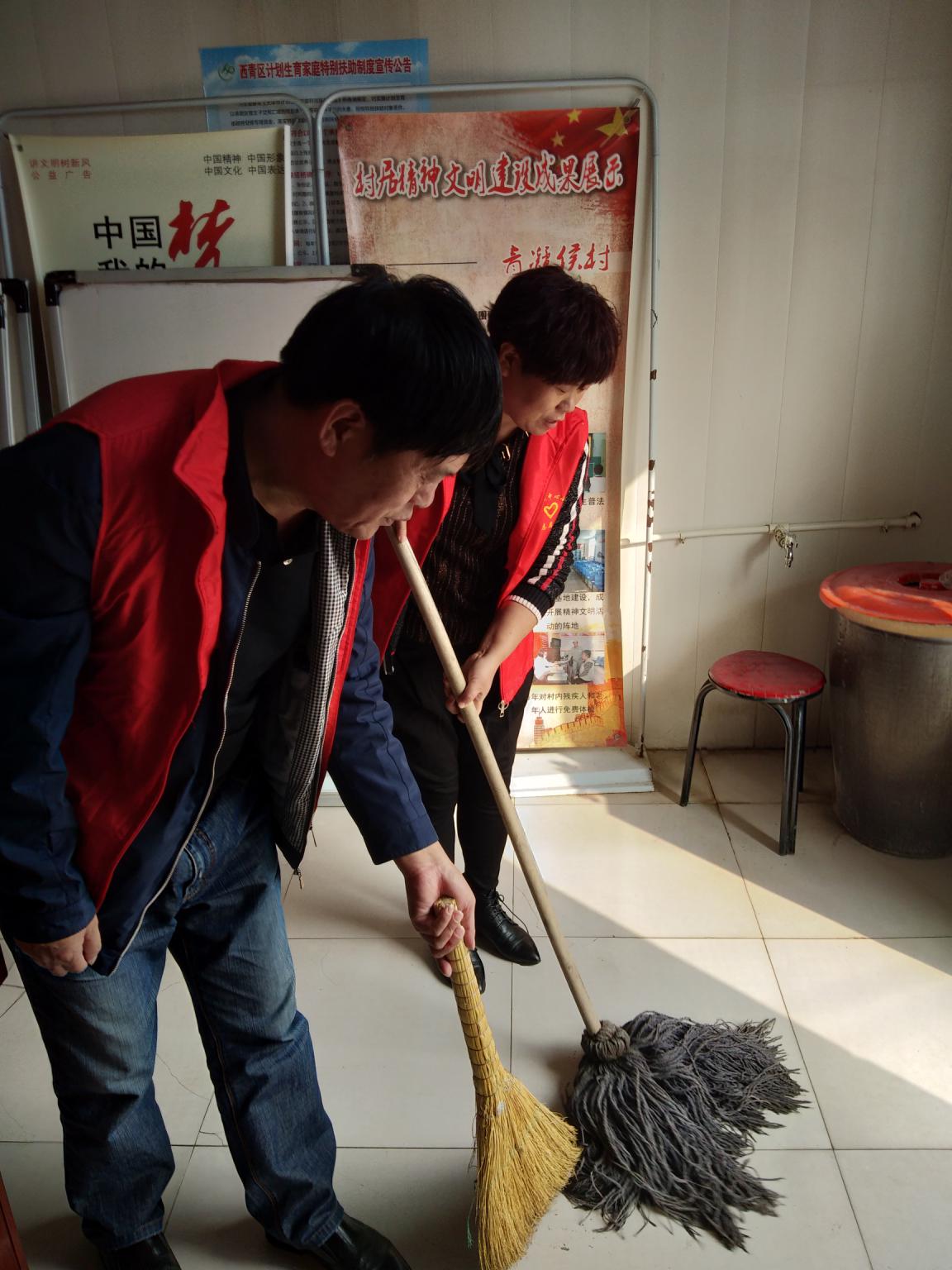 20191018,青凝侯中心小学,教师志愿者在帮助村委会打扫卫生