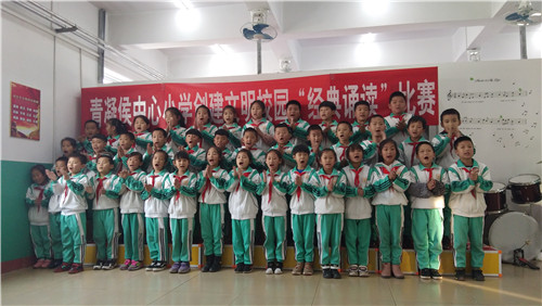 中华五千年的悠久历史,孕育了深厚底蕴的华夏文化;源远流长的古典诗文,筑就了经久不衰的民族瑰宝。读千古美文,诵中华经典。青凝侯中心小学为加强学生德育教育,落实立德树人根本任务,强化学生爱国主义教育和增强民族自豪感。2019年11月20日组织全校师生开展以“诵读国学经典,浸润智慧人生”为主题的创建文明校园国学经典诵读比赛活动。平日里各班利用“晨诵、午读、暮吟”时间,对学生进行包括《弟子规》、《三字经》、《千字文》、《少年说》等国学经典诵读练习,让学生不短积累沉淀,营造了书香校园的氛围。比赛过程中,孩子们以班级为单位,进行了各式各样的展示活动:拍手诵读、伴乐歌颂、场景展示等,每一个动作、每一个眼神,都透露了孩子们的自信和骄傲。古诗美文,在孩子们如歌如梦的诵读中、在孩子们如痴如醉的演示中、得到了经典的演绎,和升华。