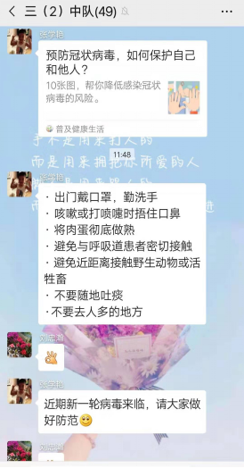 20200126青凝侯中心小学通过微信群宣传疫情防控知识