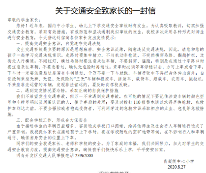 为认真贯彻习近平总书记关于加强安全生产工作的系列重要指示批示精神,进一步强化道路交通安全管理,深入推进创建文明城区工作,有效防止、减少交通事故发生,为人民群众出行提供良好的交通环境,青凝侯中心小学从2020年8月下旬起至11月底,开展交通安全“百日攻坚行动”,强化学校交通安全宣传教育,现将宣传教育情况小结如下: