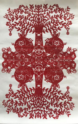 学生们用书法和剪纸作品来表达讲诚信,讲公平